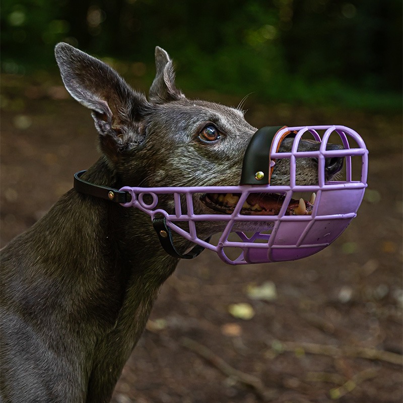Windhund Maulkorb mit Lederschnallenverschluss.