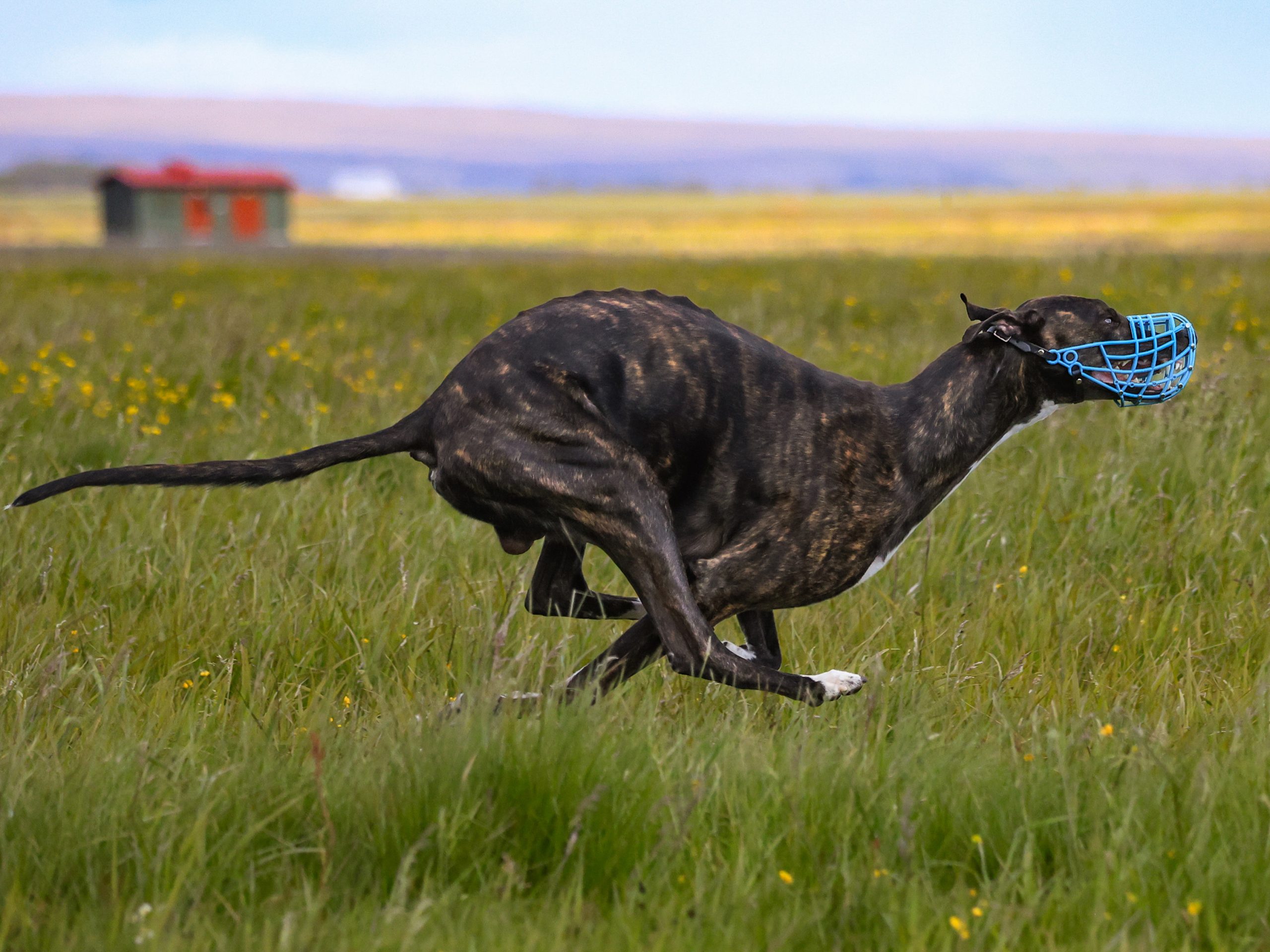 Windhundmaulkorb mit Lederschnallenverschluss.